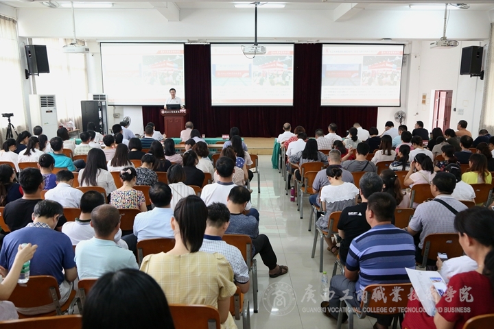 ??????? 2019年7月12日下午,我院于鵬飛校區(qū)報告廳召開2018—2019學(xué)年第二學(xué)期期末總結(jié)大會。全體院領(lǐng)導(dǎo)及教職工參加了本次會議。會議由學(xué)院黨委書記覃武云主持,院長李維在會上作本學(xué)期工作總結(jié)。