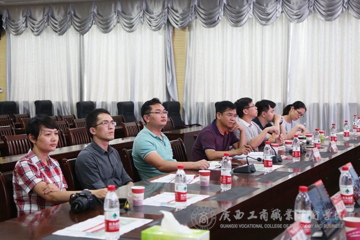 ??????? 會(huì)上,覃壯才處長(zhǎng)、黃云奇副處長(zhǎng)一行觀看了我院宣傳片,聽取了學(xué)院領(lǐng)導(dǎo)關(guān)于學(xué)院建校以來的歷史,辦學(xué)情況,基礎(chǔ)建設(shè),特色專業(yè)等方面的簡(jiǎn)要匯報(bào)。