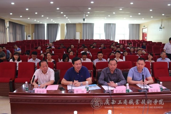 ? ? ? ? 2019年7月14日,結合學院紅旗渠專題黨性教育培訓班安排,學院院長李維率學院領導、中層干部、離退休黨支部委員代表一行50人赴河南工業(yè)貿易職業(yè)學院、河南農業(yè)職業(yè)學院等2所高職院校進行參觀考察。