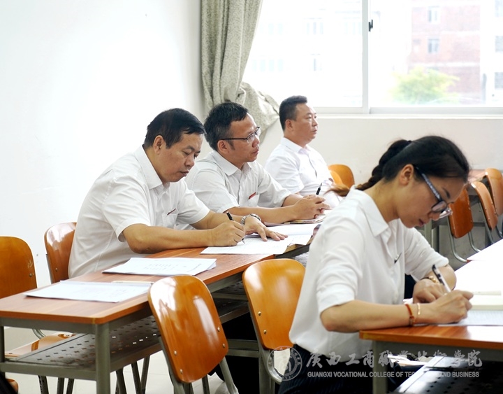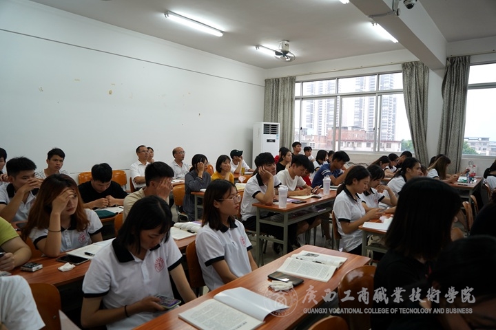 ? ? ? ? 8月26日是我院2019年秋季學(xué)期開學(xué)第一天,為了了解各系部開學(xué)教學(xué)準備工作情況,學(xué)院領(lǐng)導(dǎo)及教務(wù)科研處人員分組到各系部進行巡查并聽課。其中,覃武云書記聽了會計系謝奇駿老師的《納稅會計實務(wù)》及梁亞兵老師的《出納實務(wù)》課程,李維院長聽了經(jīng)管系陳瑤老師的《東盟物流市場營銷》及黃英老師的《酒店服務(wù)英語》課程,蒙啟成副書記聽了思政部林勇靈老師的《形勢與政策》課程,李仕欽副院長聽了公共部黎春曉老師的《應(yīng)用文寫作》課程,陳寧春副院長聽了財信系莫德成老師《裝飾畫》及廖美紅老師的《網(wǎng)絡(luò)營銷與策劃》課程。