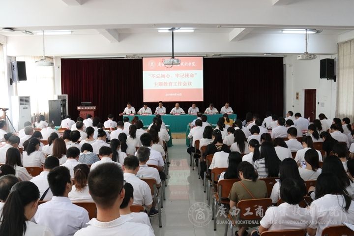 ? ? ? ? 9月16日上午,中共廣西工商職業(yè)技術(shù)學(xué)院委員會在鵬飛校區(qū)報告廳召開“不忘初心、牢記使命”主題教育工作會議。會議貫徹落實黨中央、自治區(qū)黨委關(guān)于主題教育的部署要求,對全院主題教育工作進行全面動員部署。自治區(qū)黨委“不忘初心、牢記使命”主題教育第七巡回指導(dǎo)組組長周懷營、副組長趙煥春、副組長俞健出席會議,俞健在會上發(fā)表講話,指導(dǎo)組其他同志到會指導(dǎo)。學(xué)院黨委書記覃武云在會上作動員講話,學(xué)院黨委副書記、院長李維主持會議。
