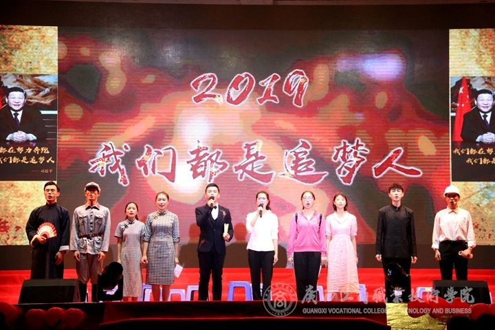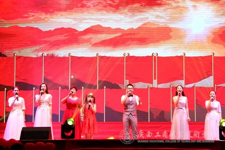 ??????? 9月29日晚,我院于鵬飛校區(qū)文體館二樓舉辦“不忘初心、牢記使命 壯麗70年,奮斗新時(shí)代——慶祝中華人民共和國(guó)成立70周年暨2019級(jí)新生文藝晚會(huì)”。學(xué)院黨委書(shū)記覃武云,院長(zhǎng)李維,黨委副書(shū)記、紀(jì)委書(shū)記蒙啟成,副院長(zhǎng)李仕欽出席了本次晚會(huì);學(xué)院各系、各組織老師代表,以及17級(jí),18級(jí)各班代表參加并觀看本次晚會(huì)。本次晚會(huì)由馬力、葛明慧、梁言騰、秦文靜、倪龍、謝瑞珍主持。