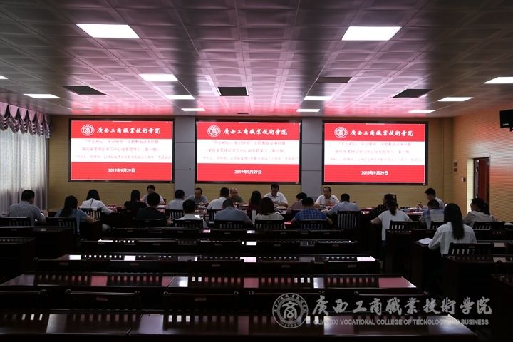 ??????? 9月29日下午,我院于鵬飛校區(qū)教學(xué)樓視頻會議室召開“不忘初心、牢記使命”主題教育讀書班暨學(xué)院黨委理論學(xué)習(xí)中心組“守初心、擔(dān)使命,以優(yōu)異成績慶祝新中國成立“70周年”專題研討會。學(xué)院黨委書記覃武云、院長李維、黨委副書記、紀委書記蒙啟成、副院長李仕欽出席會議,學(xué)院黨委委員、各部門、各單位主要負責(zé)人(中共黨員)、學(xué)院工會、團委主要負責(zé)人參加本次會議。本次會議由覃武云書記主持。
