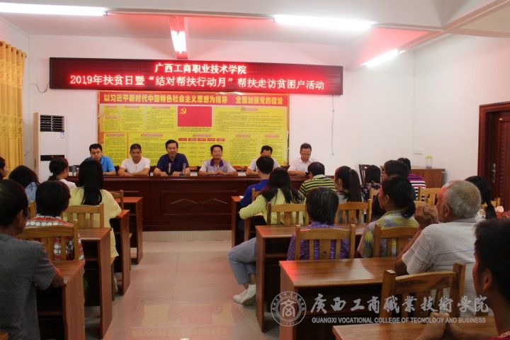 ? ? ? ? 在全國(guó)上下積極開(kāi)展扶貧日系列活動(dòng)之際,結(jié)合“不忘初心、牢記使命”主題教育安排,教務(wù)科研處黨支部、財(cái)信系黨總支于10月17-18日,到陸川縣清湖鎮(zhèn)那若村開(kāi)展了2019年扶貧日暨“結(jié)對(duì)幫扶行動(dòng)月”幫扶走訪貧困戶活動(dòng)。本次活動(dòng)由廣西工商職業(yè)技術(shù)學(xué)院院長(zhǎng)、黨委副書(shū)記李維帶隊(duì),活動(dòng)共有18名黨員教師參加,為那若村49戶貧困戶送去慰問(wèn)金1.47萬(wàn)元。