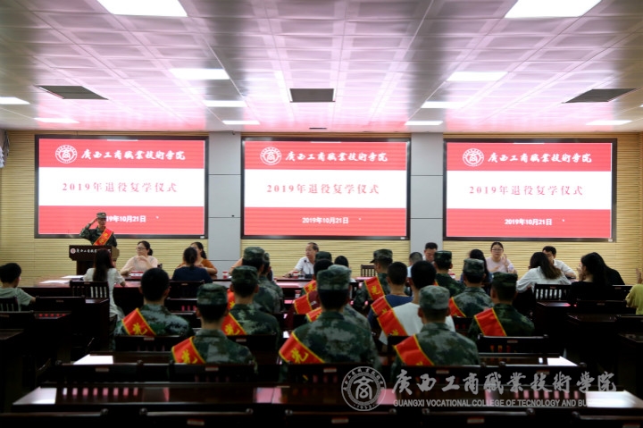 ? ? ? ? 10月21日下午,我院于鵬飛校區(qū)教學(xué)樓視頻會議室舉辦2019年退役復(fù)學(xué)儀式,學(xué)院副院長李仕欽出席了本次活動。學(xué)院征兵工作領(lǐng)導(dǎo)小組、學(xué)院征兵工作站負(fù)責(zé)人、系黨總支書記、分管學(xué)生工作副主任、2019年退役復(fù)學(xué)學(xué)生、2019年退役復(fù)學(xué)學(xué)生入伍前及復(fù)學(xué)所在班級輔導(dǎo)員、學(xué)生代表參加了本次活動。