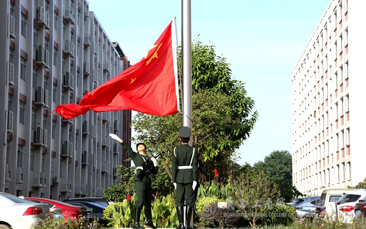 (國(guó)旗隊(duì)護(hù)送五星紅旗與學(xué)院院旗)