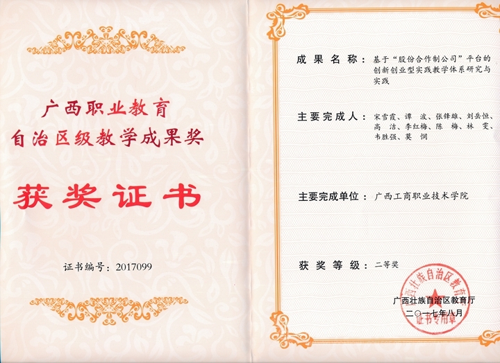 (2017年廣西職業(yè)教育自治區(qū)級教學(xué)成果三等獎)