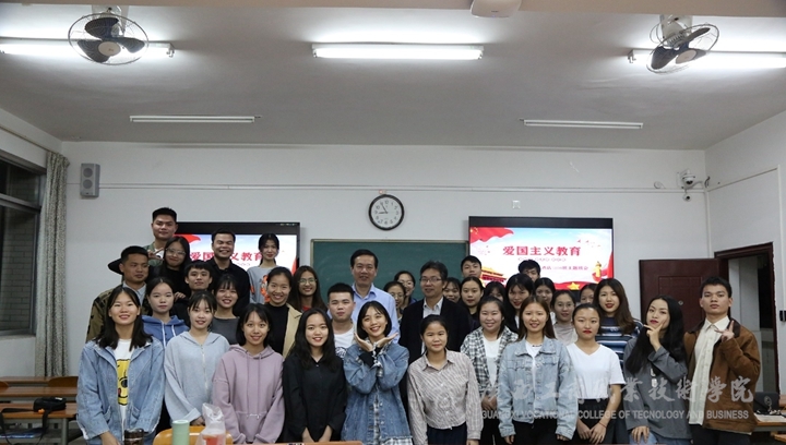 為深入開展“愛國主義”教育,2019年11月21日,經(jīng)管系酒店1804班在鵬飛校區(qū)2417教室開展了“愛國主義教育”主題班會。學(xué)院院長李維同志、黨委學(xué)工部部長林雯同志參加本次班會,班會由經(jīng)管系羅素貞老師主持。