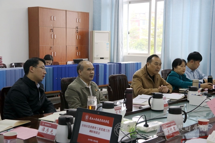 ??? 座談會(huì)上,調(diào)研組首先聽取學(xué)院黨委書記覃武云關(guān)于我院黨建工作情況的匯報(bào),接著與會(huì)人員針對(duì)我院黨建工作有關(guān)情況開展座談交流。隨后,調(diào)研組詳細(xì)查閱了我院黨建工作臺(tái)賬資料。