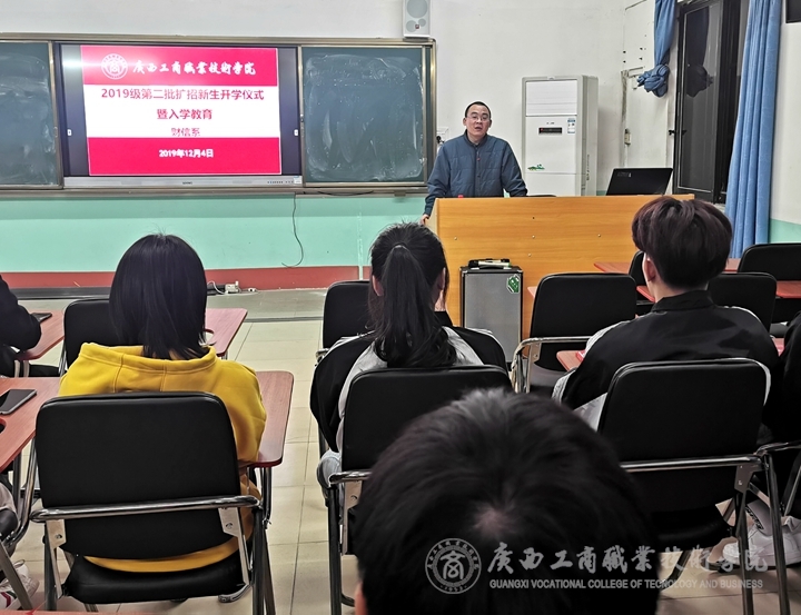 2019年12月4日19時,財信系在中堯校區(qū)工會樓302教室,組織2019級高職擴招二階段新生參加新生開學(xué)儀式暨入學(xué)教育。學(xué)院學(xué)工部副部長林雯、財信系主任蘇波、財信系學(xué)工副主任譚序光、財信系教學(xué)秘書呂周及財信系高職擴招二階段19名新生參加了開學(xué)儀式。