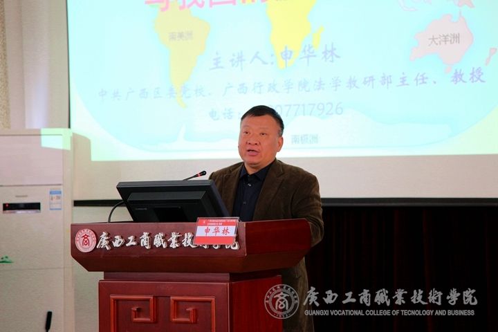 我院邀請(qǐng)到了中共廣西區(qū)委黨校、廣西行政學(xué)院法學(xué)教研部主任申華林教授,以《當(dāng)前國(guó)際國(guó)內(nèi)形勢(shì)與我國(guó)的應(yīng)對(duì)策略》為主題舉辦專(zhuān)題講座。