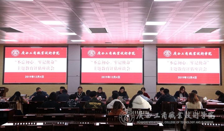 為進一步了解掌握學(xué)院深入開展主題教育情況,有效推動主題教育成果轉(zhuǎn)化,2019年12月4日上午,我院于鵬飛校區(qū)教學(xué)樓視頻會議室召開關(guān)于自治區(qū)黨委“不忘初心、牢記使命”主題教育第七巡回指導(dǎo)組評估座談會。自治區(qū)黨委“不忘初心、牢記使命”主題教育第七巡回指導(dǎo)組成員,學(xué)院中層以上領(lǐng)導(dǎo)干部、教師會代表、群眾代表以及學(xué)生黨員代表,學(xué)院主題辦工作人員參加了本次座談會。本次會議由第七巡回指導(dǎo)組成員廖滿媚同志主持。