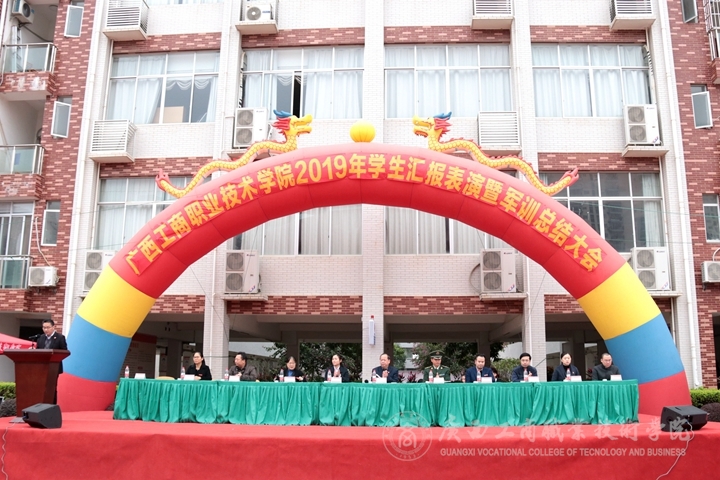 12月23日上午,我院于鵬飛校區(qū)田徑場(chǎng)隆重舉行2019年學(xué)生匯報(bào)表演暨軍訓(xùn)總結(jié)大會(huì)。學(xué)院副院長(zhǎng)李仕欽、武警廣西總隊(duì)機(jī)動(dòng)支隊(duì)一大隊(duì)大隊(duì)長(zhǎng)黃康洋出席大會(huì),教務(wù)科研處、后勤管理處和各系主任、黨總支書記、學(xué)工副主任、2019級(jí)輔導(dǎo)員、2019級(jí)全體參訓(xùn)學(xué)生、教官等參加了此次大會(huì),大會(huì)由黨委學(xué)生工作部副部長(zhǎng)林雯主持。