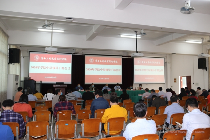 4月28日上午,我院于鵬飛校區(qū)教學(xué)樓報告廳召開學(xué)院2020年中層領(lǐng)導(dǎo)干部會議。本次大會由學(xué)院黨委書記覃武云主持,院長李維在會上做開學(xué)工作報告。我院在校領(lǐng)導(dǎo)班子成員參加會議。
