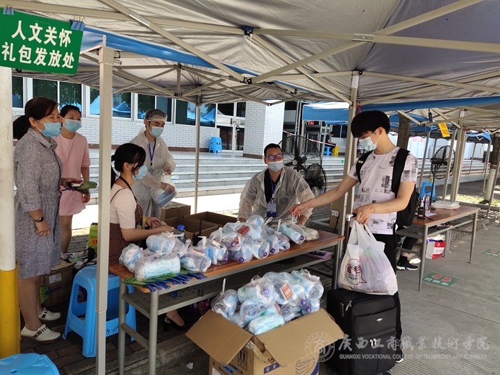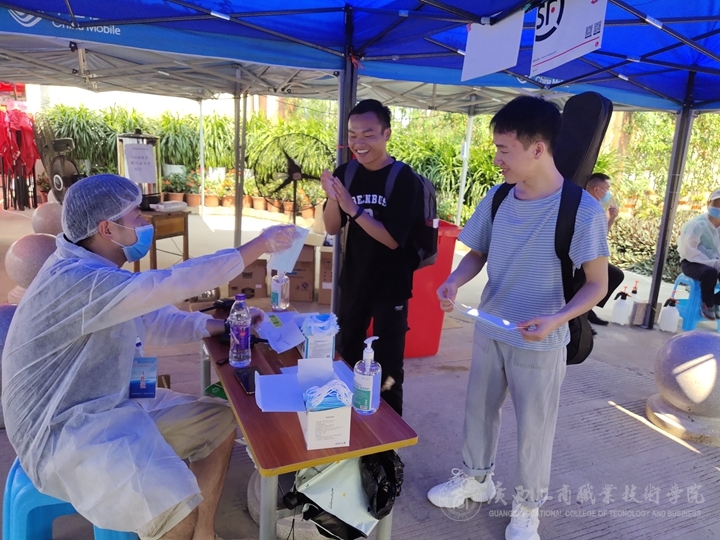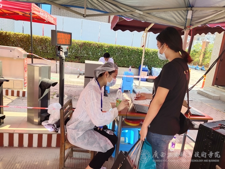 清晨的空氣清新舒爽,燦爛的陽光照耀著大地。校門口,迎來了久違的莘莘學(xué)子...... 校道上那醒目的“同心,同樂,結(jié)伴成長(zhǎng),歡迎回來”的橫幅,讓人激動(dòng)不已。“返校同學(xué)請(qǐng)排好隊(duì),接受體溫檢測(cè)......”,老師們一早已在各個(gè)工作崗位上忙碌開來。當(dāng)經(jīng)管系學(xué)子乘車來到校門口,就迎來返校的第一站。首先進(jìn)行的是行李物品消殺及更換新口罩,從物品上做好學(xué)子們的健康保護(hù);接著是第一次測(cè)溫點(diǎn)測(cè)溫檢查,體溫檢測(cè)合格的學(xué)子將通過今日校園掃碼進(jìn)入校園,體溫異常則需原地等待工作人員進(jìn)一步檢查和處理;走過體溫正常安全通道,就來到第二次測(cè)溫點(diǎn)進(jìn)行體溫復(fù)核,并在今日校園進(jìn)行登記;最后,學(xué)子們還領(lǐng)取到學(xué)院精心準(zhǔn)備的“愛心健康包”,里面放有十三個(gè)口罩、一瓶水和一包紙巾。不僅如此,為了保障學(xué)子們的健康,系部后續(xù)安排每個(gè)班級(jí)的兩位同學(xué)進(jìn)行防疫工作的培訓(xùn),每天為各自班級(jí)的同學(xué)檢查體溫。