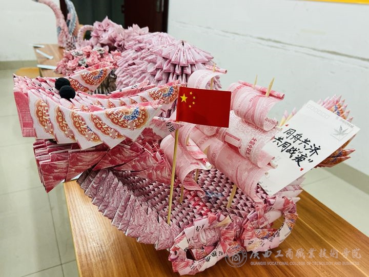 參賽作品主要使用的材料是廢棄的點鈔練功券,由各個參賽隊伍結(jié)合自身的創(chuàng)意,圍繞主題折疊出不同造型的作品,歷時一星期精心準備。本次比賽旨在鼓勵全系學(xué)生充分利用課余時間,培養(yǎng)技能,提高職業(yè)技能水平和動手能力,增強創(chuàng)新意識。
