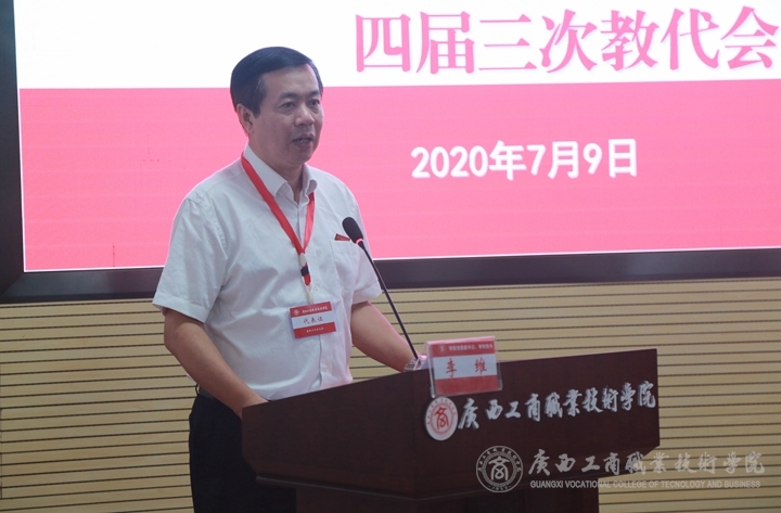 會(huì)上,由學(xué)院黨委組織部副部長(zhǎng)鄭華對(duì)“廣西工商職業(yè)技術(shù)學(xué)院內(nèi)設(shè)機(jī)構(gòu)調(diào)整方案”、“廣西工商職業(yè)技術(shù)學(xué)院高等學(xué)校教師系列高、中、初級(jí)專業(yè)技術(shù)資格評(píng)審條件(教代會(huì)審議稿)”作出說(shuō)明。