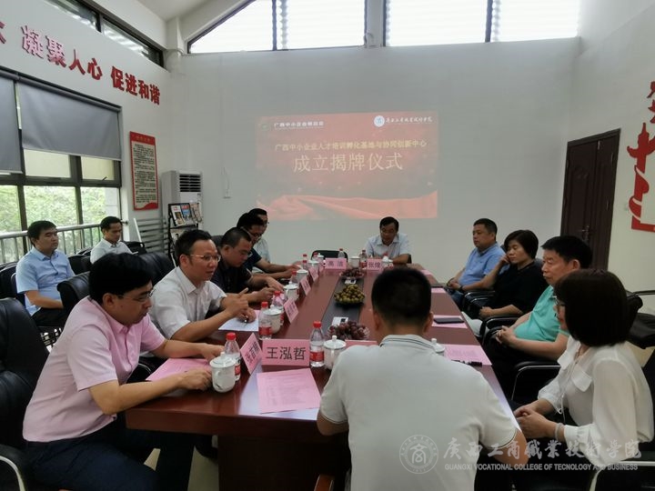 2020年8月4日,由廣西中小企業(yè)聯(lián)合會和廣西工商職業(yè)技術(shù)學(xué)院聯(lián)合設(shè)立的“廣西中小企業(yè)人才培訓(xùn)孵化基地”、“廣西中小企業(yè)協(xié)同創(chuàng)新中心”成立揭牌儀式在南寧五象新區(qū)電商小鎮(zhèn)順利舉行。