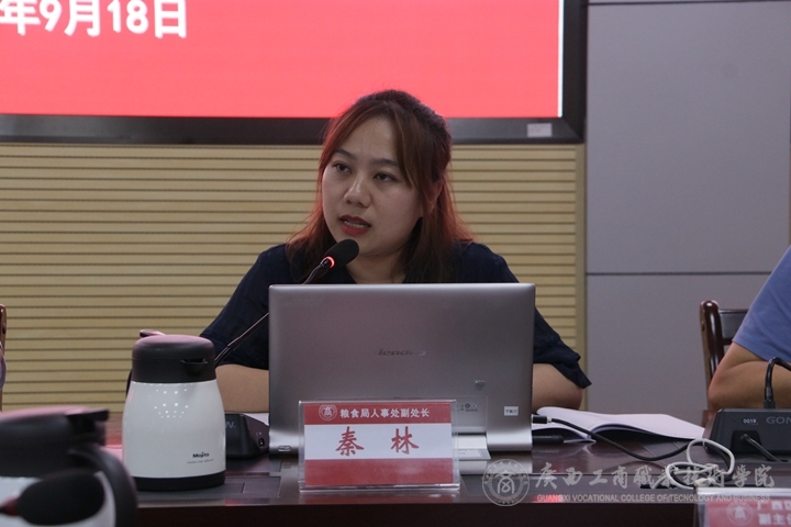 ?廣西壯族自治區(qū)糧食和物資儲(chǔ)備局人事處副處長秦林講話