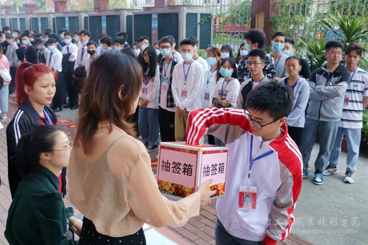 比賽開始前,參賽隊伍在工作人員的指引下排隊進(jìn)行抽簽,抽簽完畢后,22支代表隊88名參賽選手在志愿者的帶領(lǐng)下,各隊伍按照抽簽的順序進(jìn)入指定位置,正式開始廣西職業(yè)院校技能大賽高職組沙盤模擬企業(yè)管理模擬沙盤賽項的角逐。