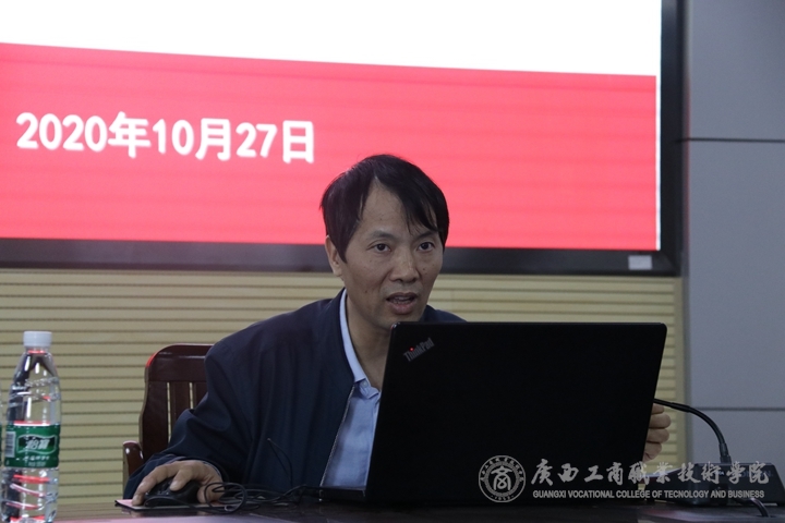 2020年10月27日上午,在鵬飛校區(qū)教學(xué)樓2119會(huì)議室舉辦主題為“新商科人才培養(yǎng)”的創(chuàng)新交流會(huì),并邀請(qǐng)兩位校外專家對(duì)校內(nèi)老師和2020年廣西高職院校技能大賽企業(yè)管理模擬沙盤賽項(xiàng)指導(dǎo)老師進(jìn)行講座和交流指導(dǎo),他們分別是廣西財(cái)經(jīng)學(xué)院人事處處長(zhǎng)(原工商管理學(xué)院院長(zhǎng))梁儒謙教授、南寧師范大學(xué)職業(yè)技術(shù)教育學(xué)院數(shù)字媒體技術(shù)系主任鄭小軍教授。本次交流會(huì)由我校經(jīng)貿(mào)學(xué)院院長(zhǎng)張煌強(qiáng)主持。