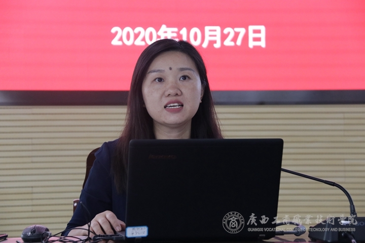 最后,我院管理學(xué)院院長(zhǎng)高潔對(duì)《廣西職業(yè)教育工商企業(yè)管理專業(yè)及專業(yè)群研究基地工作匯報(bào)》做了簡(jiǎn)要介紹,主要包括兩方面內(nèi)容:一是研究基地建設(shè)及落實(shí)。包括基地建設(shè)情況、建設(shè)目標(biāo)、建設(shè)落實(shí)情況。二是研究基地成果及展示。