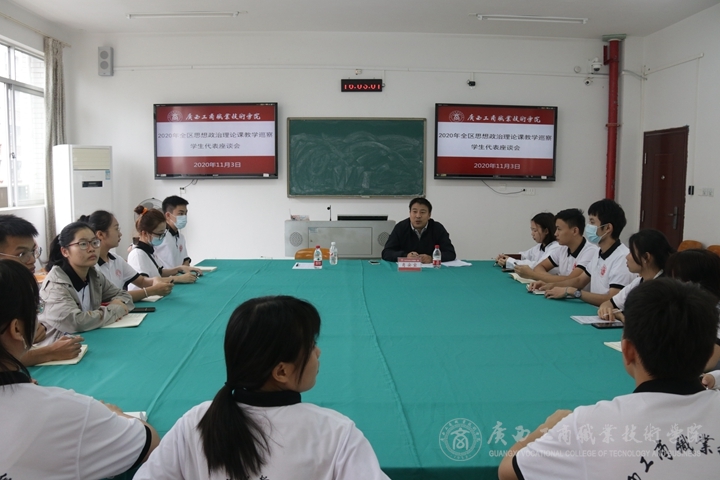 2020年11月3日下午,以廣西職業(yè)技術學院黨委書記李衛(wèi)東教授為組長的自治區(qū)教育廳巡察組對我院思想政治理論課教學工作開展巡察。本次巡察工作分為匯報會、聽課、座談會、查看資料、反饋會等五個環(huán)節(jié)。