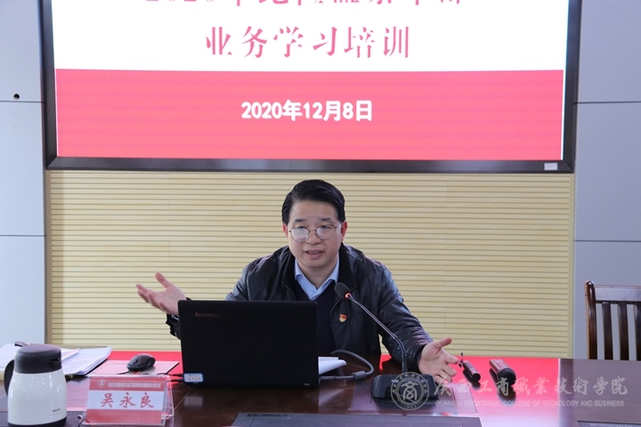 12月8日下午,我院開展紀檢監(jiān)察干部業(yè)務學習培訓。本次活動邀請了自治區(qū)紀委監(jiān)委駐自治區(qū)發(fā)展改革委紀檢監(jiān)察組辦公室主任吳永良作“做實做細日常監(jiān)督,推動黨風廉政和反腐敗工作高質(zhì)量發(fā)展”為主題的業(yè)務學習培訓講座。學院紀委書記韋云鳳、學院紀委委員,學院各黨總支、各直屬黨支部書記(負責人)及支委會委員,學院紀委辦、監(jiān)察室全體人員參加了培訓講座。學院紀委書記韋云鳳主持講座。