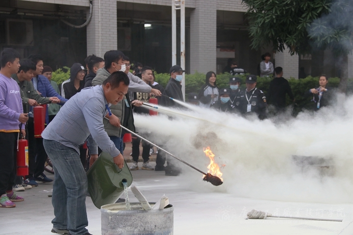 楊博華指導員為大家講解消防安全知識和滅火器材使用方法,指導學生進行滅火操作。廣大師生員工積極參與活動,增強救援意識。