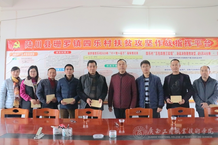 12月15日,學(xué)院黨委副書記蒙啟成率隊,黨委宣傳部、黨委學(xué)生工作部、通識教育學(xué)院老師代表一行7人赴陸川珊羅鎮(zhèn)定點扶貧村四樂村開展助力脫貧攻堅工作。