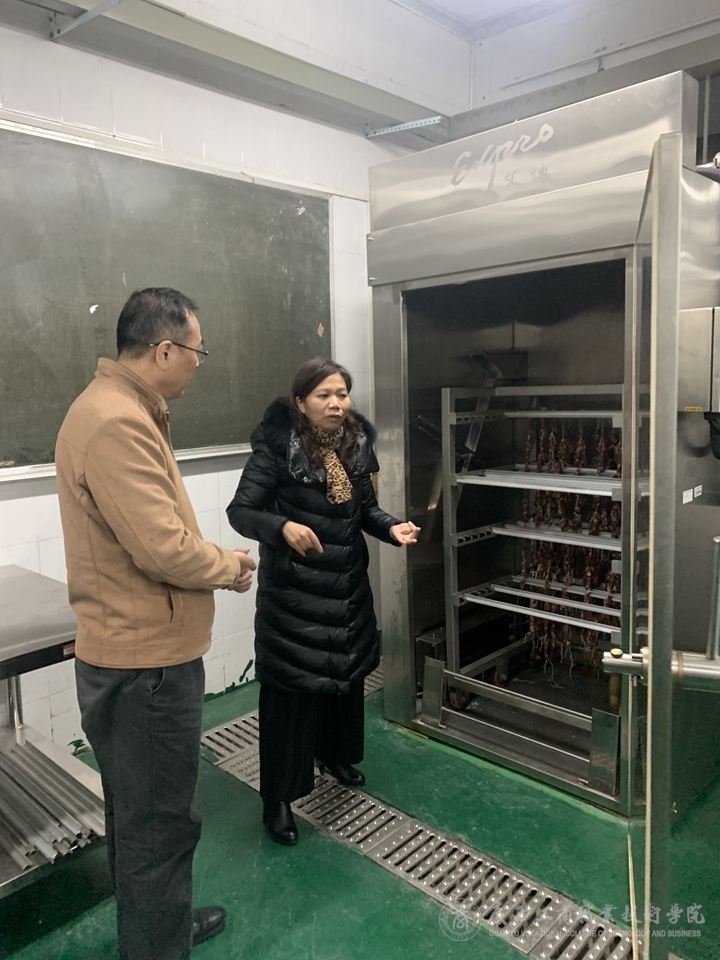 隨后,李影球教授向蒙啟成副書記一行展示了食品加工實(shí)訓(xùn)室,介紹了目前正在進(jìn)行的川式臘肉和廣式臘腸食品實(shí)驗(yàn),并邀請蒙啟成副書記一行參與食品感官評定。