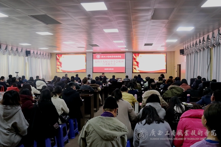 12月21日下午,自治區(qū)糧食和物資儲(chǔ)備局局長(zhǎng)吳宇雄應(yīng)邀到我院作黨的十九屆五中全會(huì)精神宣講報(bào)告。本次報(bào)告會(huì)在我院鵬飛校區(qū)2119會(huì)議室舉行,學(xué)院黨委書記覃武云、院長(zhǎng)李維、黨委副書記蒙啟成、副院長(zhǎng)安仲文、副院長(zhǎng)闕勇平、紀(jì)委書記韋云鳳;全體中層干部;各黨總支、黨支部書記、委員;各二級(jí)學(xué)院教師和學(xué)生代表參加會(huì)議。會(huì)議由黨委書記覃武云主持。