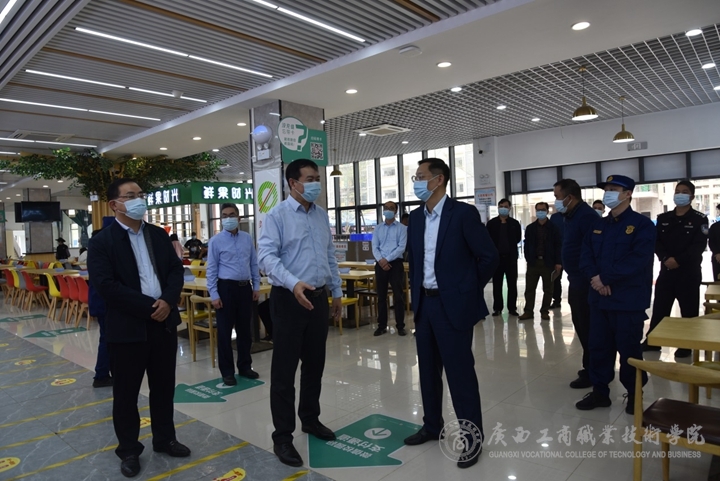 李維就學(xué)院安全知識(shí)宣傳、食堂食品安全衛(wèi)生,疫情防控應(yīng)急物資儲(chǔ)備、學(xué)校建設(shè)安全生產(chǎn)等情況進(jìn)行了詳細(xì)匯報(bào)。黃偉光一行重點(diǎn)檢查了我院食堂的用餐環(huán)境是否干凈衛(wèi)生、消防安全是否合格到位,同時(shí)還詳細(xì)了解在校師生每天的用餐情況。