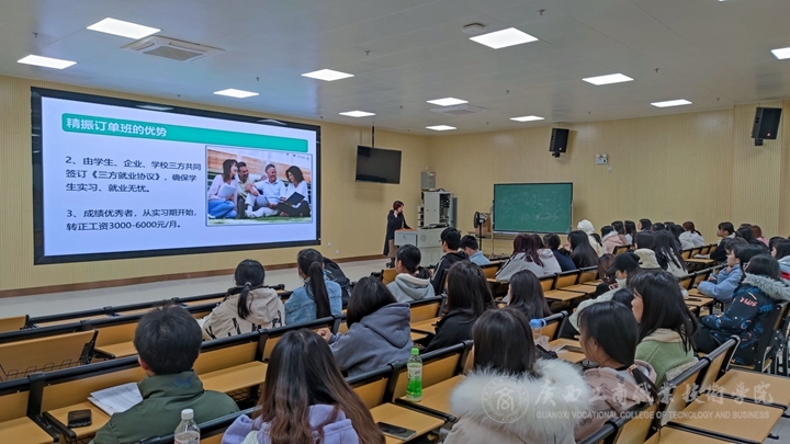 我院會計學(xué)院與南寧精振商務(wù)服務(wù)有限公司在2020級聯(lián)合開設(shè)訂單班。2020年12月31日上午,南寧精振商務(wù)服務(wù)有限公司到武鳴校區(qū)開展訂單班的宣講會。