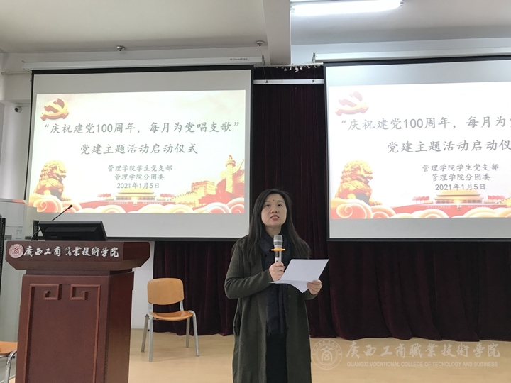 2021年1月5日中午,為激發(fā)大學(xué)生愛(ài)黨愛(ài)國(guó)熱情,表達(dá)傳承紅色基因、爭(zhēng)做時(shí)代新人、勇?lián)褡鍙?fù)興大任的遠(yuǎn)大志向,管理學(xué)院在鵬飛校區(qū)2145報(bào)告廳召開(kāi)“慶祝建黨100周年 每月為黨唱支歌”黨建主題活動(dòng)啟動(dòng)儀式。管理學(xué)院相關(guān)負(fù)責(zé)人和管理學(xué)院學(xué)生黨支部全體教師黨員及管理學(xué)院2019級(jí)及2020級(jí)所有班級(jí)的團(tuán)支部書記和文娛委員共76人參加會(huì)議。