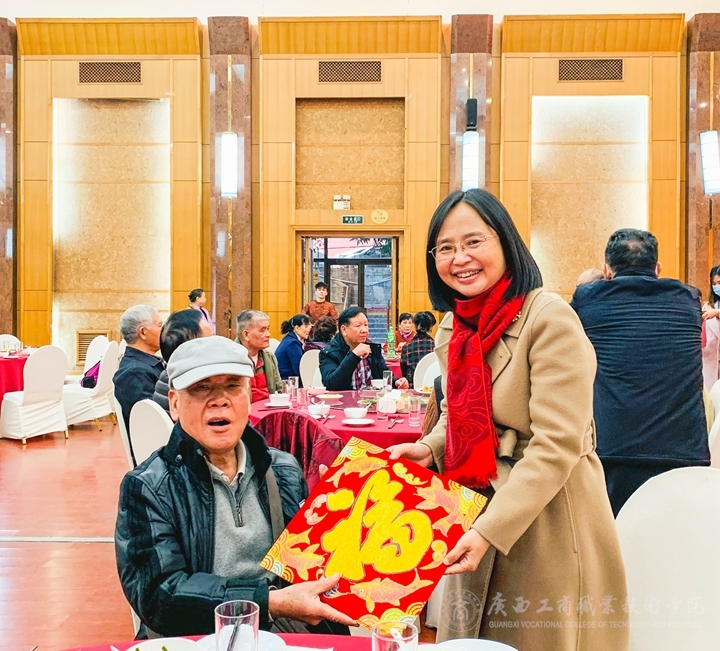 廣西工商職業(yè)技術(shù)學(xué)院1月6日上午在南寧明園飯店舉行離退休老同志迎新春茶話會(huì)。學(xué)院黨委書(shū)記覃武云、黨委副書(shū)記蒙啟成、紀(jì)委書(shū)記韋云鳳同離退休老同志代表歡聚一堂,共迎新春。