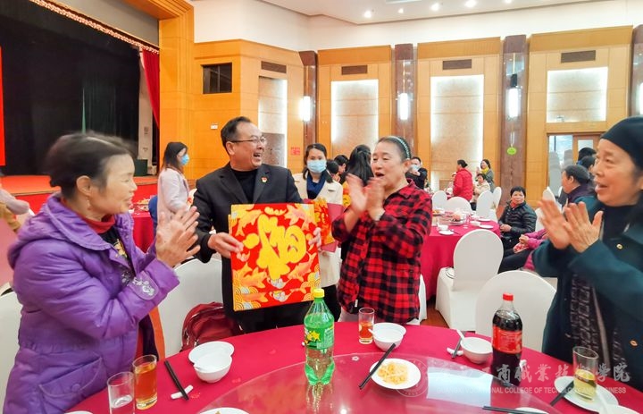 學(xué)院黨委副書(shū)記蒙啟成、工會(huì)主席蒙啟成送福