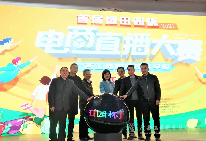 2021年1月5日上午,我院于中堯校區(qū)風雨球場,舉行首屆綠田園杯廣西工商職業(yè)技術學院電商直播大賽開幕式暨校企合作簽約儀式。廣西工商職業(yè)技術學院副院長闕勇平,廣州綠田園農(nóng)業(yè)科技有限公司副董事長戴春燕、北部灣產(chǎn)權交易所集團股份有限公司三農(nóng)事業(yè)部總經(jīng)理林宇、南寧市扶貧產(chǎn)品品牌開發(fā)協(xié)會秘書長歐凱、學院教務處處長蘇波出席本次活動。大賽開幕式式由經(jīng)貿(mào)學院張煌強院長主持。本次活動還有來自區(qū)內(nèi)外21家扶貧產(chǎn)品企業(yè)代表,經(jīng)貿(mào)學院的老師們、電商19、20級全體同學及電商協(xié)會工作人員參加。