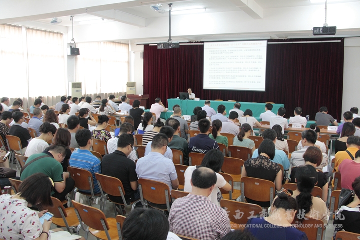 2015年6月9日下午,我院在校本部教學樓一樓報告廳舉辦依法治校專題講座。自治區(qū)教育廳政策法規(guī)處處長伍錦昌作了題為《全面推進依法治教依法治?!返膶n}講座。學院領導覃武云、蒙啟成、李仕欽、李維出席,學院副科級以上干部參加。講座由蒙啟成副書記主持。