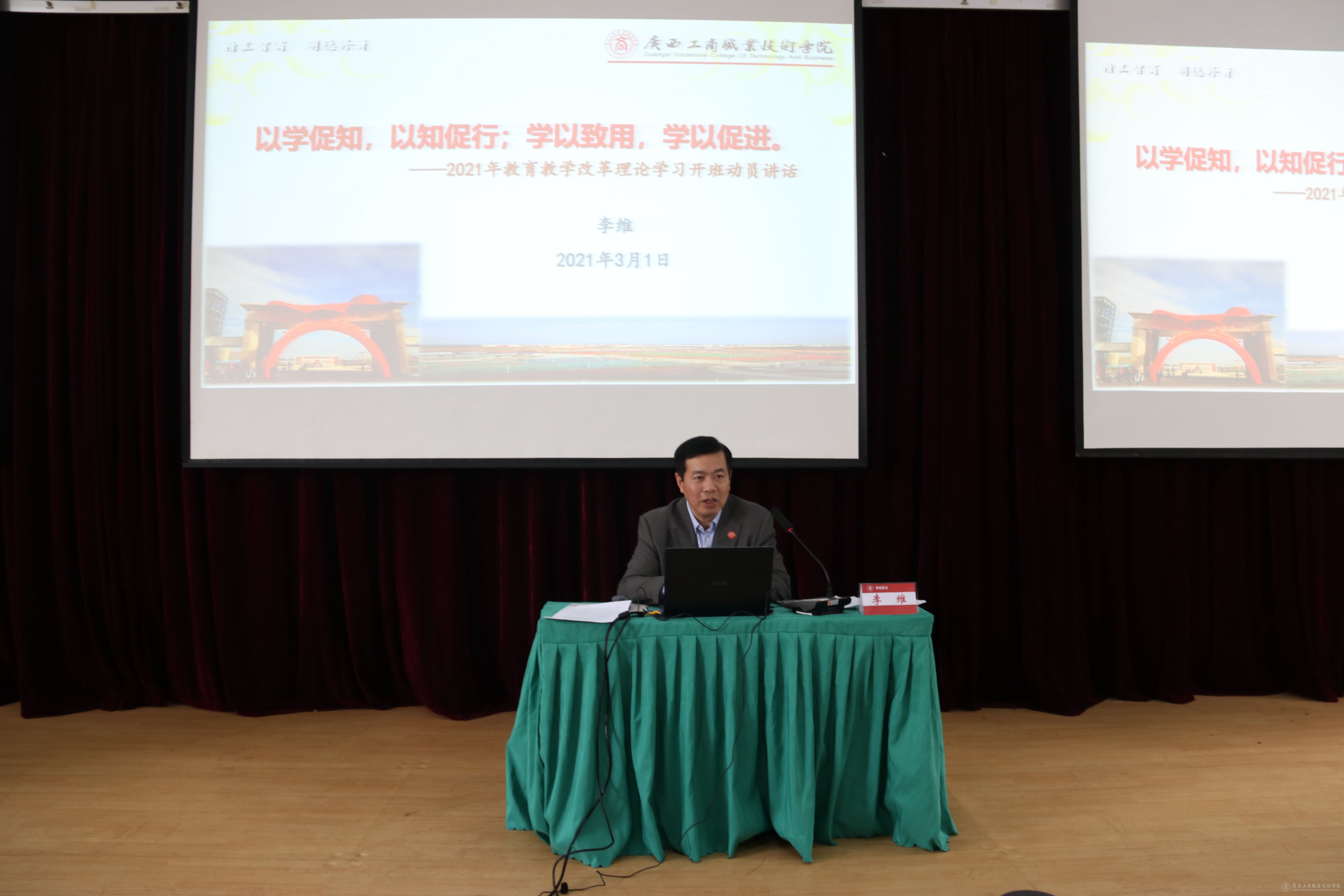為持續(xù)推動教育教學改革、扎實推進“雙高”建設(shè)及“提質(zhì)培優(yōu)”任務(wù)落實落細,不斷提升學院教學管理干部理論學習能力,學院組織開展2021年教育教學改革理論學習活動。3月1日下午,第一次集中學習培訓活動在鵬飛校區(qū)2145會議室舉辦。本次培訓由學院院長李維主講,學院領(lǐng)導和各教研室教師近200人參加學習。
