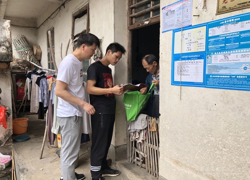 (八角村第一書(shū)記陸惠鋒、駐村工作隊(duì)員凌勇明走訪農(nóng)戶及收幫扶手冊(cè))