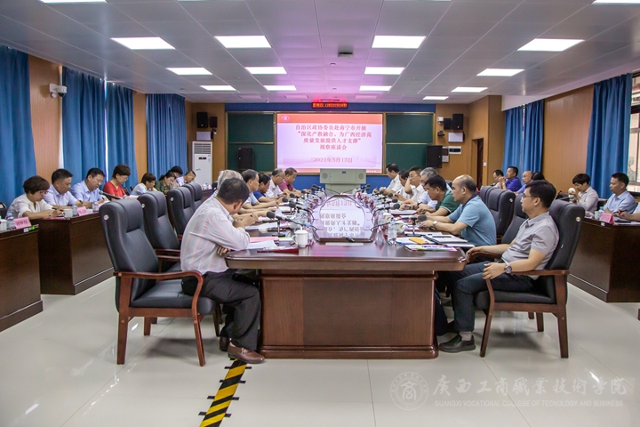 5月13日上午,自治區(qū)政協(xié)副主席黃洲帶領(lǐng)政協(xié)委員調(diào)研組到我院武鳴校區(qū)視察調(diào)研,并在我院武鳴校區(qū)行政樓召開“深化產(chǎn)教融合,為廣西經(jīng)濟(jì)高質(zhì)量發(fā)展提供人才支撐”視察座談會。自治區(qū)教育廳、南寧市政協(xié)、市教育園區(qū)指揮部負(fù)責(zé)同志陪同調(diào)研。學(xué)院黨委書記覃武云、院長李維、副院長陳寧春、闕勇平參加調(diào)研。調(diào)研座談會由自治區(qū)政協(xié)教科衛(wèi)體委員會主任彭鋼主持。