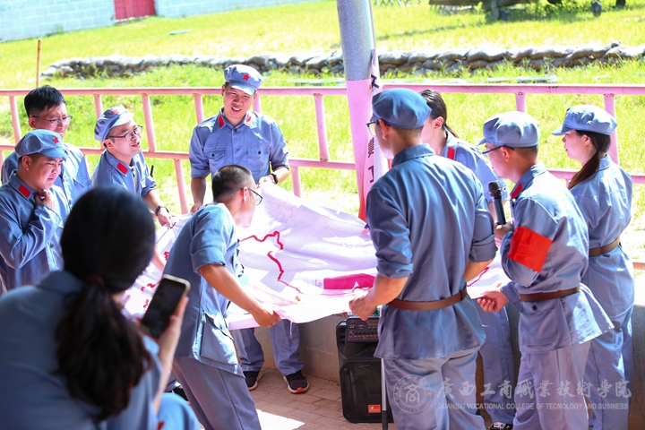 培訓班還組織開展了體驗教學環(huán)節(jié)。6月18日,學員們身著紅軍服、手握紅纓槍,現(xiàn)場“重走長征路”,分組建立各路方面軍,模擬體驗了瑞金出征、湘江戰(zhàn)役、遵義會議、飛奪瀘定橋、重走長征路、勝利大會師等長征歷史中可歌可泣的故事,為中國共產(chǎn)黨成立100周年獻禮。