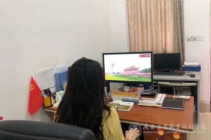 (教師自發(fā)在辦公室觀看慶祝大會直播)