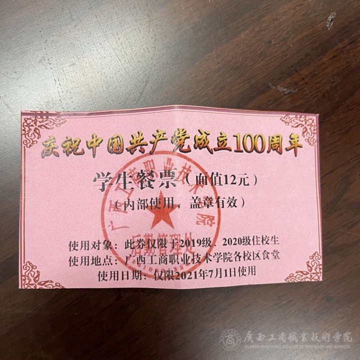 (圖為我院“慶祝中國共產(chǎn)黨成立100周年”12元餐券)