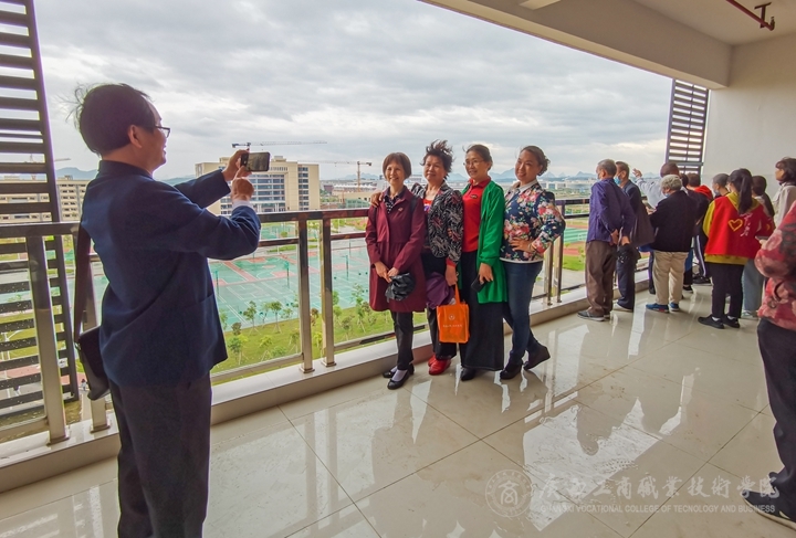 抵達(dá)武鳴校區(qū)后,由學(xué)生工作部的人員帶引離退休老同志參觀學(xué)生宿舍,接著步行參觀校區(qū),李維院長(zhǎng)向離退休老同志介紹新校區(qū)的建設(shè)情況和招生入學(xué)情況。參觀過(guò)程中,老同志了解武鳴校區(qū)的硬件建設(shè)和文化建設(shè)情況,頻頻點(diǎn)頭,對(duì)新校區(qū)完善的基礎(chǔ)設(shè)施建設(shè)贊許有嘉,并不時(shí)地詢問(wèn)學(xué)校近來(lái)發(fā)展的情況。