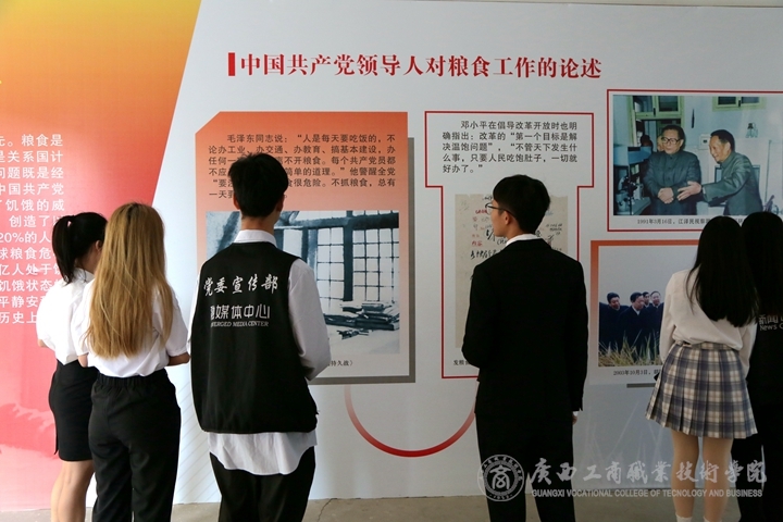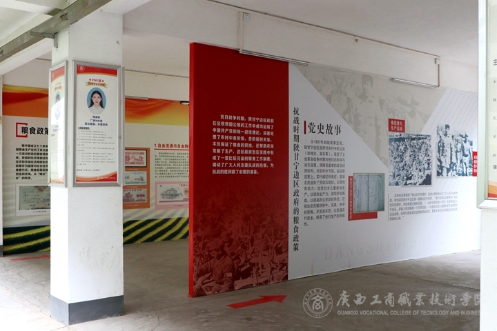自黨史學(xué)習(xí)教育開展以來,學(xué)院把文化建設(shè)擺在首位,始終堅持立德樹人根本目的,立足涉糧高校實際,從年初起籌劃布展建黨100周年“黨史中的糧食故事”展廳,歷經(jīng)數(shù)月收集、整理文獻歷史資料,在架空層重點結(jié)合建黨百年主題設(shè)計了面積三百平米的臨時展廳,分“中國共產(chǎn)黨領(lǐng)導(dǎo)人對糧食工作的論述、習(xí)近平總書記談糧食安全、新中國糧食工作背景、廣西糧食工作背景、糧食管理機構(gòu)改革、糧食政策的歷史變遷、黨史故事——抗戰(zhàn)時期陜甘寧邊區(qū)政府的糧食政策、黨史故事——新中國成立初期的“米棉之戰(zhàn)”、黨史故事——中國農(nóng)村改革第一村、黨史故事——“皇糧國稅”成為歷史、新時代糧食發(fā)展新篇章、數(shù)說糧食工作成就“等10個主題的篇章,將黨在各個歷史階段發(fā)生的重要涉糧政策、事件串聯(lián)起來,將在時代劇烈變革下變遷、遠去的糧食記憶展示出來,集中展現(xiàn)了中國共產(chǎn)黨和黨的地方組織領(lǐng)導(dǎo)人民的進行艱苦卓絕的涉糧政策斗爭和不朽業(yè)績。一幅幅生動的圖片、一個個跌宕起伏的故事,都折射出共產(chǎn)黨人心系民生、與人民群眾的魚水感情,讓參展觀眾仿佛身臨其境,重溫百年歷史,牢記守好糧食安全的囑托,把紅色基因根植心中。