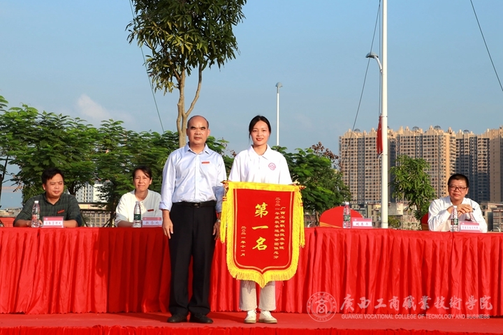 (學(xué)院領(lǐng)導(dǎo)為武鳴、鵬飛校區(qū)團(tuán)體總分第一名頒獎(jiǎng))