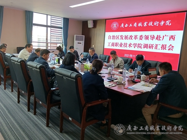 接著,李祚標(biāo)組長一行在武鳴校區(qū)教學(xué)樓A2-710會議室聽取了學(xué)院有關(guān)工作情況匯報。學(xué)院院長李維從學(xué)院基本情況、武鳴校區(qū)項(xiàng)目規(guī)劃情況、項(xiàng)目推進(jìn)情況、存在的困難及需要解決的問題等方面匯報了我院武鳴校區(qū)建設(shè)工作情況;學(xué)院紀(jì)委書記韋云鳳匯報了我院黨風(fēng)廉政建設(shè)尤其是工程建設(shè)領(lǐng)域監(jiān)督工作的情況;學(xué)院黨委書記匯報了在武鳴校區(qū)建設(shè)中黨委落實(shí)主體責(zé)任及黨委書記落實(shí)第一責(zé)任人責(zé)任等有關(guān)情況。自治區(qū)發(fā)展改革委社會處楊志鵬處長、投資處方子?xùn)|同志就推動解決我院武鳴校區(qū)建設(shè)有關(guān)問題提出了意見和建議。隨后,李祚標(biāo)組長對我院有關(guān)工作提出了意見和要求。他對武鳴校區(qū)建設(shè)工作進(jìn)展表示充分肯定、十分振奮,并就推動我院武鳴校區(qū)建設(shè)和黨風(fēng)廉政建設(shè)工作提出了明確要求。一是深入學(xué)習(xí)十九屆六中全會精神,凝聚力量,鼓舞士氣,教育和引導(dǎo)師生員工在思想上政治上行動上與黨中央保持高度一致;二是堅(jiān)持問題導(dǎo)向,抓住機(jī)遇、提高效率,著力解決武鳴校區(qū)建設(shè)工作中存在的問題;三是進(jìn)一步加強(qiáng)黨風(fēng)廉政建設(shè),黨委書記、院長要切實(shí)負(fù)起責(zé)任,加強(qiáng)對干部職工的教育監(jiān)督,結(jié)合近期廣西高校違法違紀(jì)典型案例開展警示教育,圍繞查找出來的風(fēng)險點(diǎn),扎實(shí)開展整改,確保武鳴校區(qū)項(xiàng)目建設(shè)平穩(wěn)推進(jìn)。四是加強(qiáng)產(chǎn)教融合和品牌專業(yè)建設(shè),找準(zhǔn)自身定位,突出特色,力求在重點(diǎn)領(lǐng)域上取得突破,推動職業(yè)教育高質(zhì)量發(fā)展。