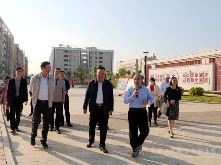 李祚標(biāo)組長一行首先實(shí)地調(diào)研走訪武鳴校區(qū)建設(shè)情況,了解武鳴校區(qū)大學(xué)生活動中心、學(xué)術(shù)活動中心、圖書館、學(xué)生宿舍(校企合作基地)、食堂、商學(xué)商訓(xùn)樓、教學(xué)行政樓等建設(shè)及使用情況。